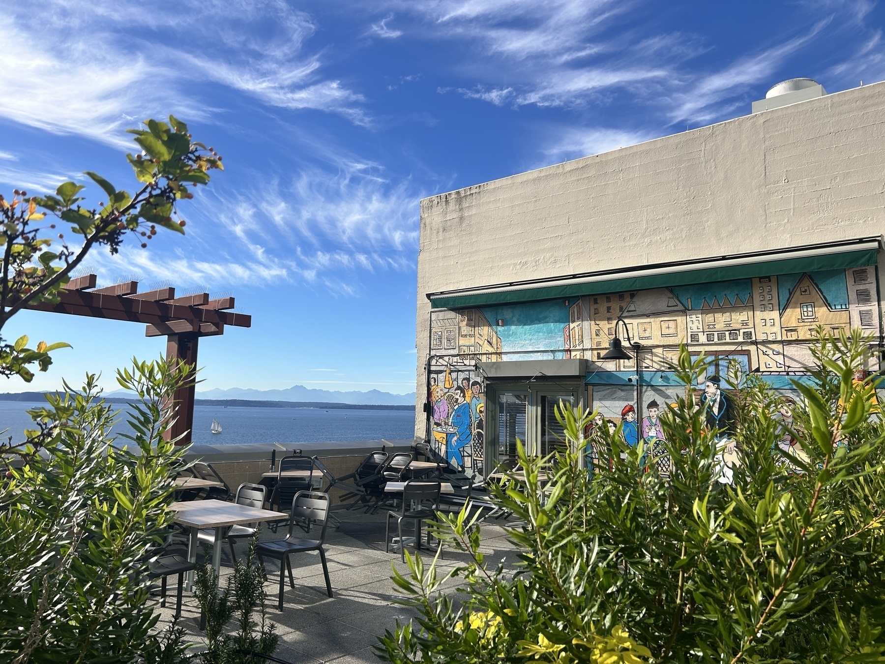 Each time I visit I find or maybe re-remember a passage to something specific that I maybe had trouble finding on a different visit. It seems to me like ramps, doors and entryways move around a little in my memory or maybe for real. Today I wandered through the door to the Pike Place Secret Garden, a rooftop urban garden overlooking the waterfront and ferris wheel. Pictures sometimes don’t do the market justice but this one captured it exactly.