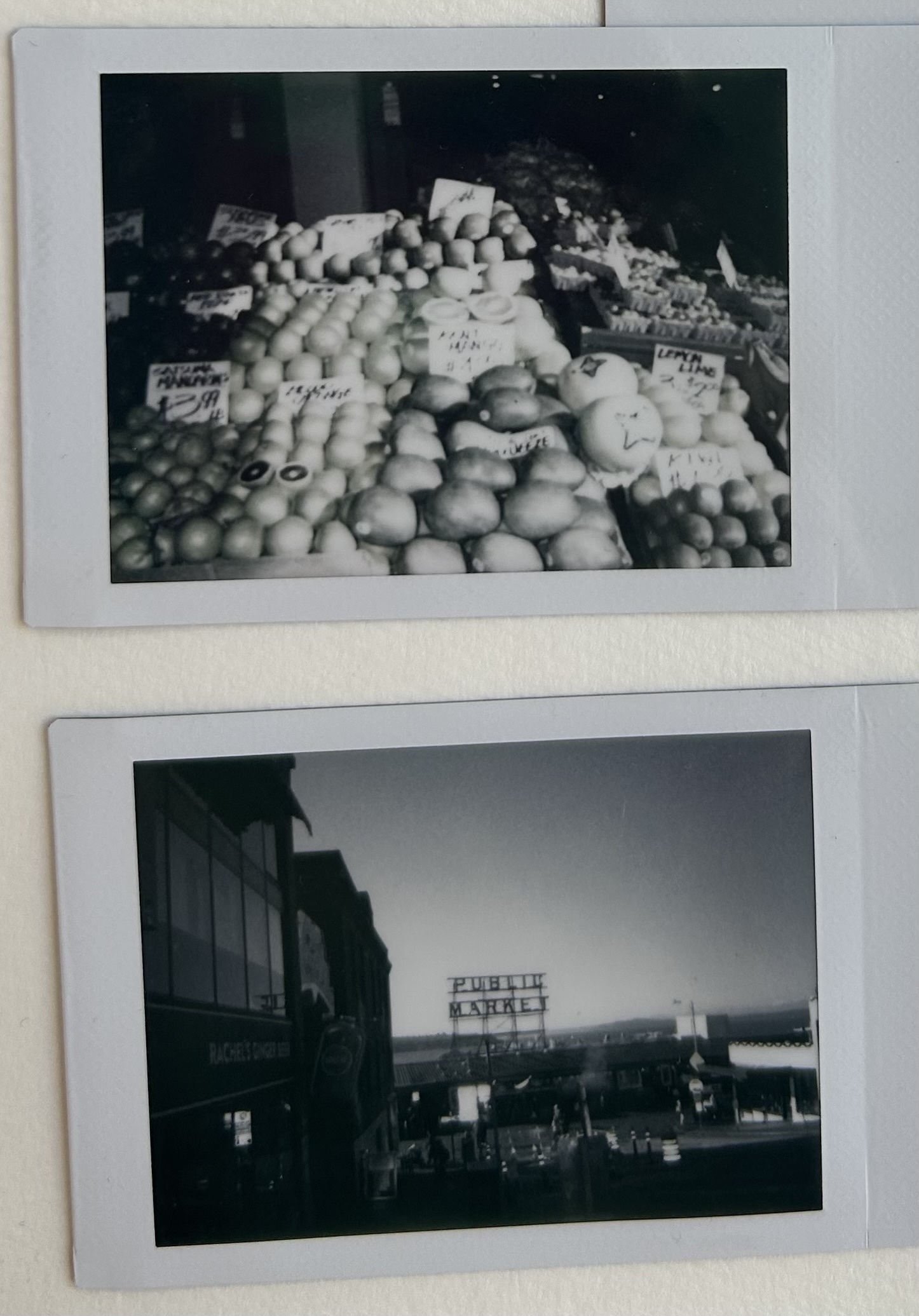 The Pike Place market was oddly cleared out today - the summer crowds were back to work and vendors stood around in the margins between their booths commiserating about the slow sales. You could walk right up to things usually hard to get close to – the theatrical fishmongers, the fortune telling Zoltar in front of the magic shop, the entrance to the “first” Starbucks. The usual chararacters were absent: violinists in rubber cat masks, the sidewalk pianist, panhandlers, typewriter poets, produce stand guys handing out apple slices. An offseason tourist couple asked me how to find Ghost Alley Espresso and I told them to go to the bronze pig statue and turn around: they’d see a staircase descending to the gum wall.